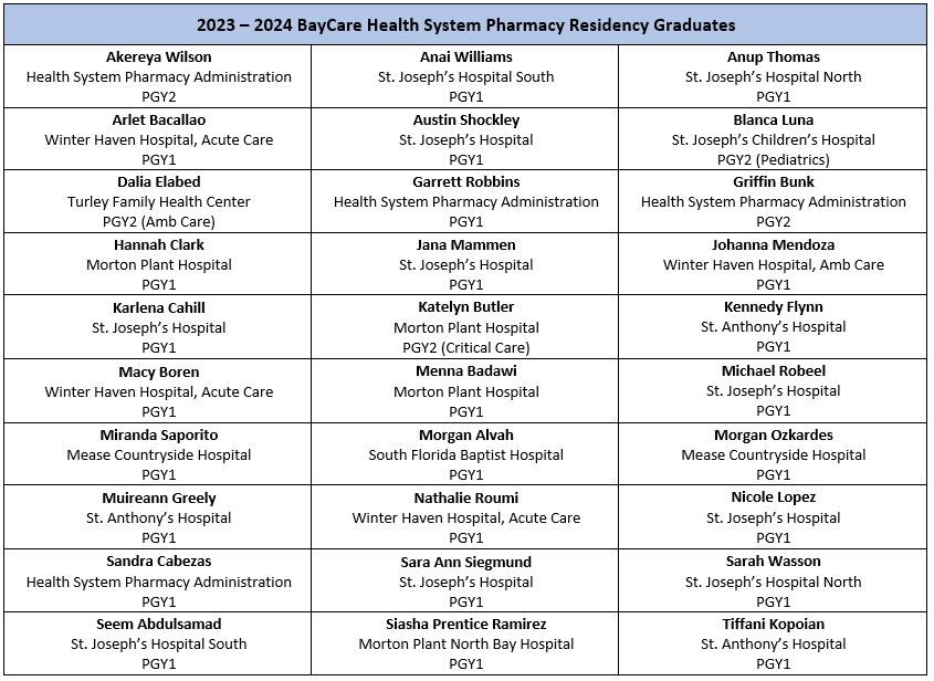 Congratulations to BayCare’s 2023-2024 Residency Class