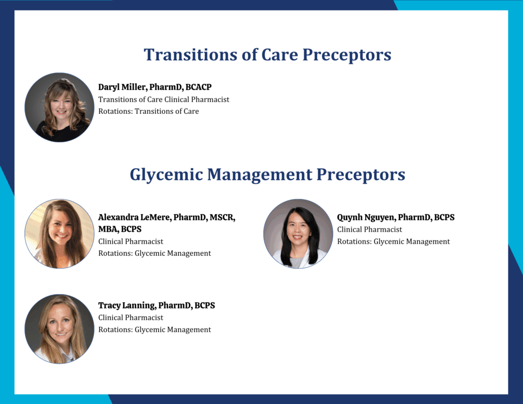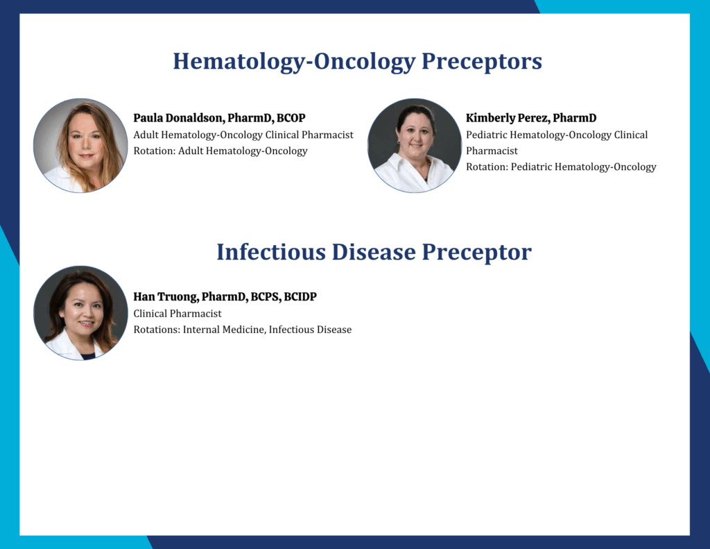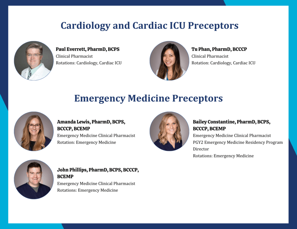 After completing seven core subject rotations essential to the pharmacy practitioner, participants in the residency program also select elective rotations that fit specific areas of interest. The residency program is committed to providing a customized experience, thereby allowing flexibility in the design and length of rotation experiences.