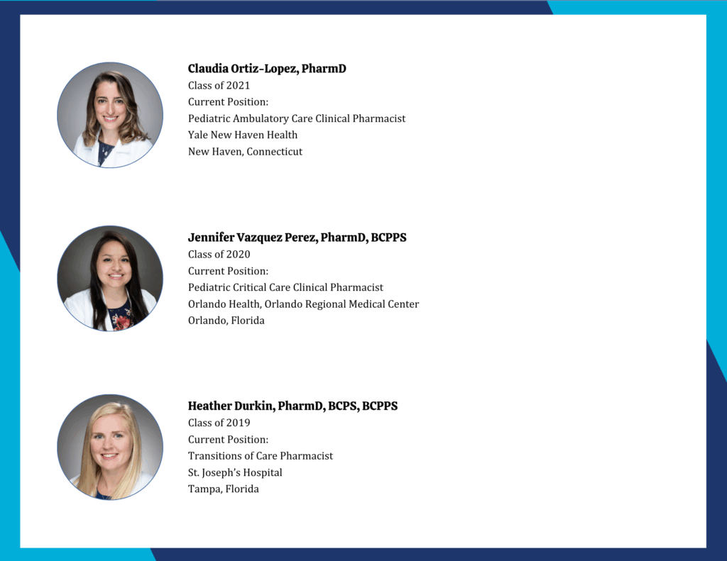 - Research project development and presentation at the Florida Residency Conference and Pediatric Pharmacy Association (PPA)