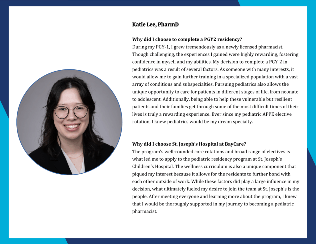 St. Joseph’s Children’s Hospital Post-Graduate Year Two (PGY2) Pediatric Pharmacy Residency Program is a 12-month program that provides specialized training for residents in pediatric and neonatal pharmacotherapy.